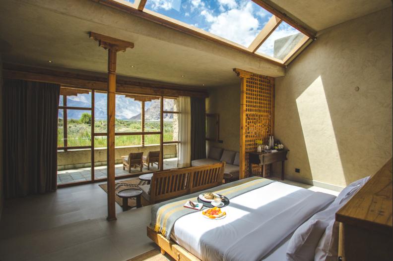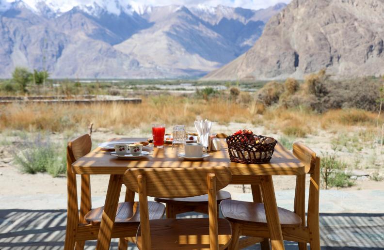 The Kyagar in Nubra Valley is a hidden gem offering a luxurious escape amidst Ladakh’s rugged beauty. This boutique retreat provides breathtaking views of sand dunes, lush green oases, and towering mountains. Each room blends traditional Ladakhi aesthetics with modern comforts, creating a warm and inviting atmosphere. Guests can enjoy delicious local and international cuisine in the dining area, which overlooks the stunning landscape. With serene gardens, cozy common areas, and easy access to attractions like Diskit Monastery and Hunder Sand Dunes, The Kyagar is the perfect base for exploring Nubra Valley’s unique culture and natural wonders. This retreat’s attentive service and tranquil ambiance ensure an unforgettable stay in the heart of Ladakh.