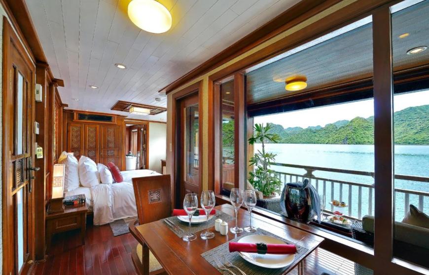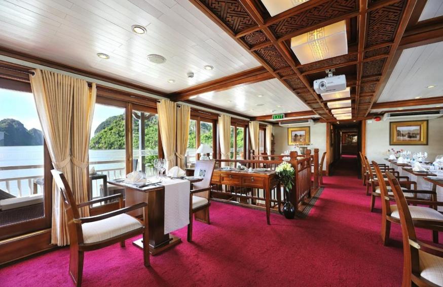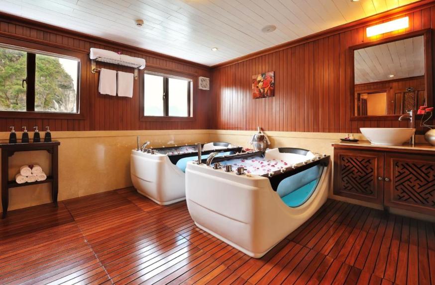 Paradise Peak, a masterpiece of luxury cruising in Halong Bay, Vietnam, offers an unparalleled journey through one of the world’s most mesmerizing natural wonders. Designed with opulence and sophistication in mind, this floating sanctuary redefines the concept of indulgence at sea. Imagine waking up in sumptuously appointed suites, each adorned with elegant Vietnamese decor and panoramic windows that frame breathtaking views of limestone karsts and emerald waters. Delight your senses with gourmet dining experiences at the onboard restaurant, where culinary creations crafted from the freshest local ingredients take center stage. Unwind on the expansive sundeck, pamper yourself with rejuvenating spa treatments, or savor sunset cocktails as you cruise through Halong Bay’s secluded bays and serene grottoes. With personalized service and attention to every detail, Paradise Peak promises a luxurious and unforgettable adventure where every moment is a celebration of elegance, tranquility, and natural beauty.